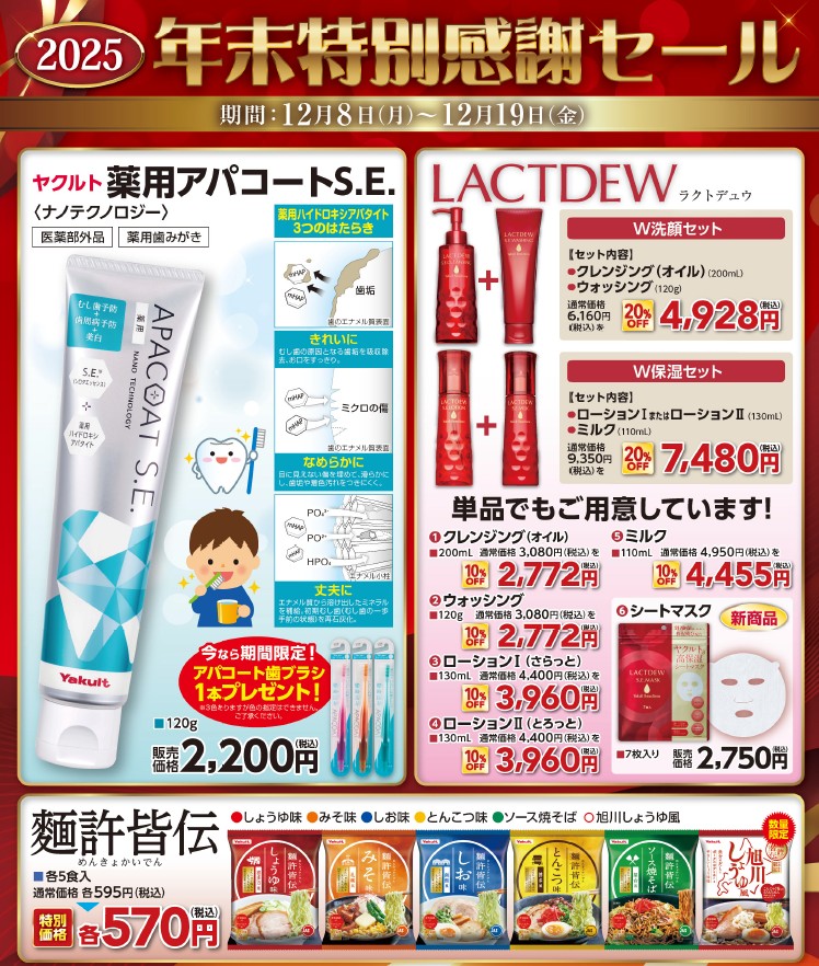 【宅配限定セール】ヤクルトレディによるお届け、またはお近くのヤクルトセンターでご購入いただけます。